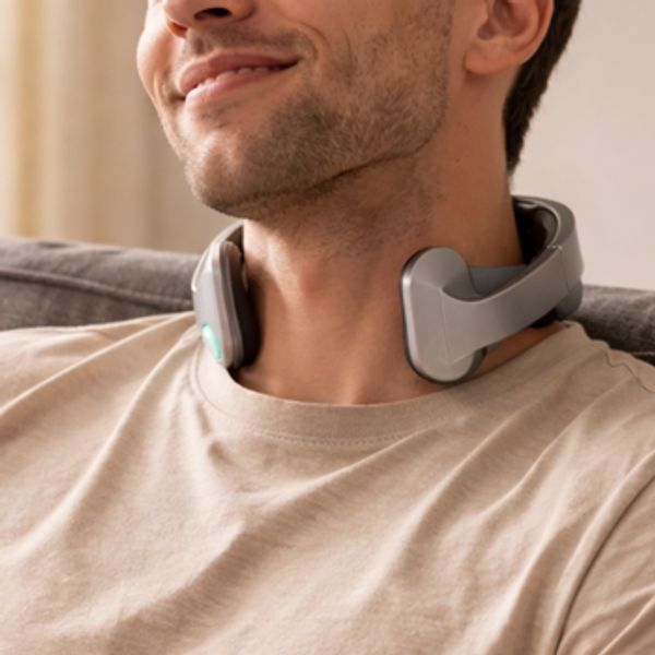 The device is designed to be worn around the neck and uses adjustable stimulation levels to safely support the nervous system.